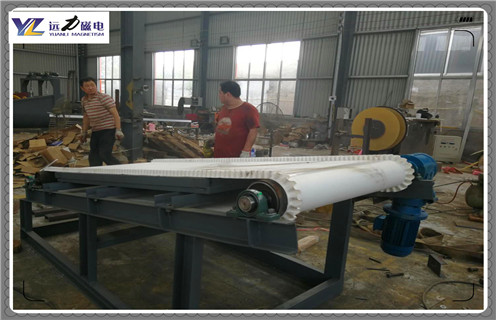 平板磁选机磁块的布置图,远力磁电平板磁选机是我公司研发的一种新型高效设备,整机的磁铁设计和研发集物理力学、流体力学、磁力学与一体,具有超高磁场强度,最高磁场可达17000Gs。平板磁选机的发明完全可以解决行业中对除铁的高标准要求,但其造价仅仅为立环式高梯度磁选机的十分之一,其超高的性价比使得立环式磁选机永远没有可能超越。从根本上解决了传统磁选机在处理小颗粒状物料时容易堵塞和带料严重的世界性技术难题。